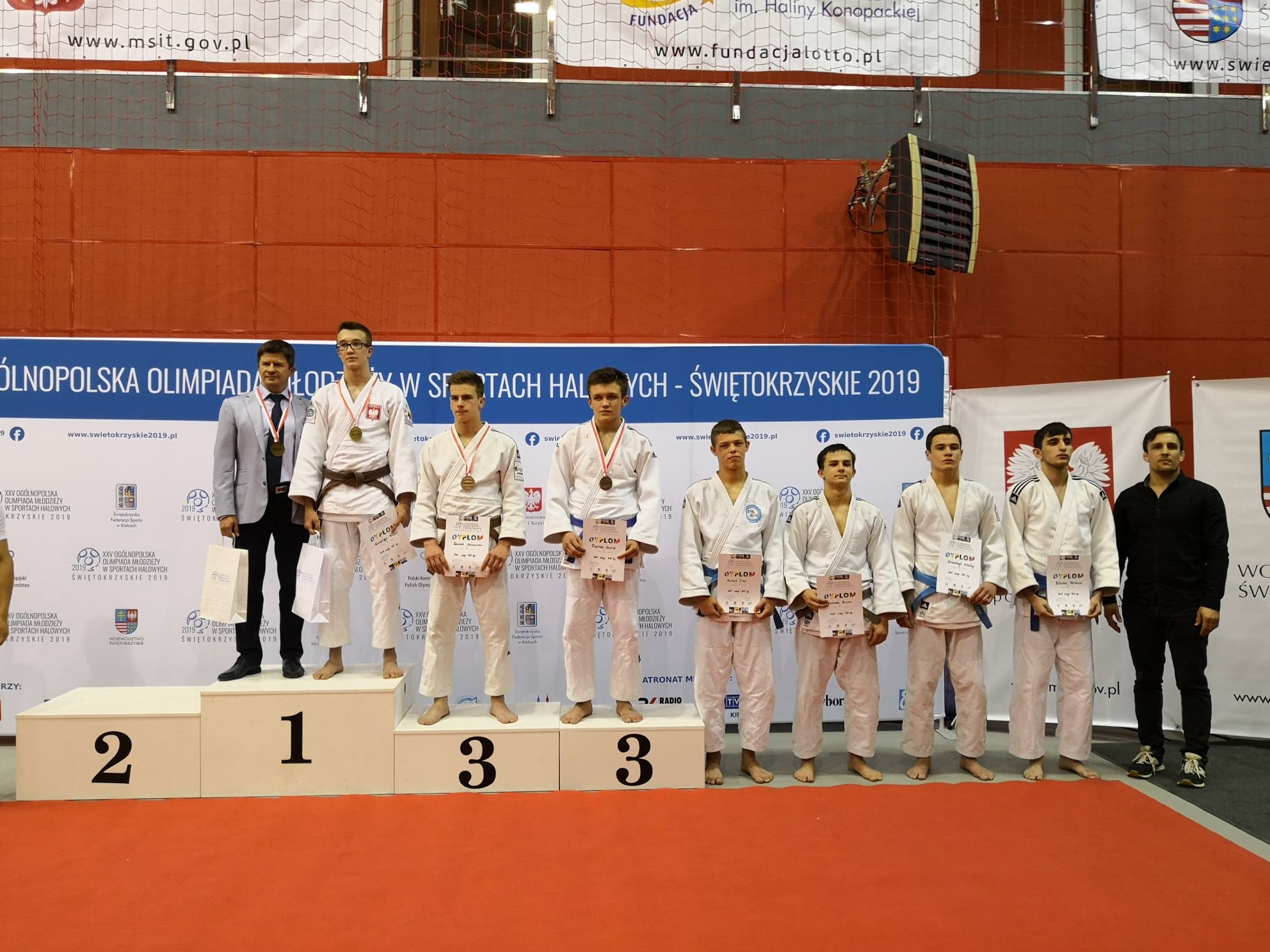 Bardzo dobry występ w Mistrzostwach Polski Juniorek i Juniorów Młodszych, XXV Ogólnopolskiej Olimpiadzie Młodzieży -Świętokrzyskie 2019 judoków Województwa Łódzkiego. Nasi reprezentanci wywalczyli trzy medale i piąte miejsce. Złoty medal zdobyła Natalia Stokłosa waga 44kg z MUKS Kokoro Łódź, trener Piotr Jarkowski. Dwa brązowe medale wywalczyli Weronika Styrcz waga 48kg z UKS Arashi Łódź, trener Tomasz Piasecki i Dawid Pietras waga 66kg z MKS Pałac Młodzieży Łódź, trenerzy Joanna Anderwald i Hovhannes Yazichjan. Niewiele do brązowego medalu zabrakło Bruno Jesionkowi z MUKS Kokoro Łódź, który ostatecznie zajął piąte miejsce w wadze do 66kg. Gratulacje.