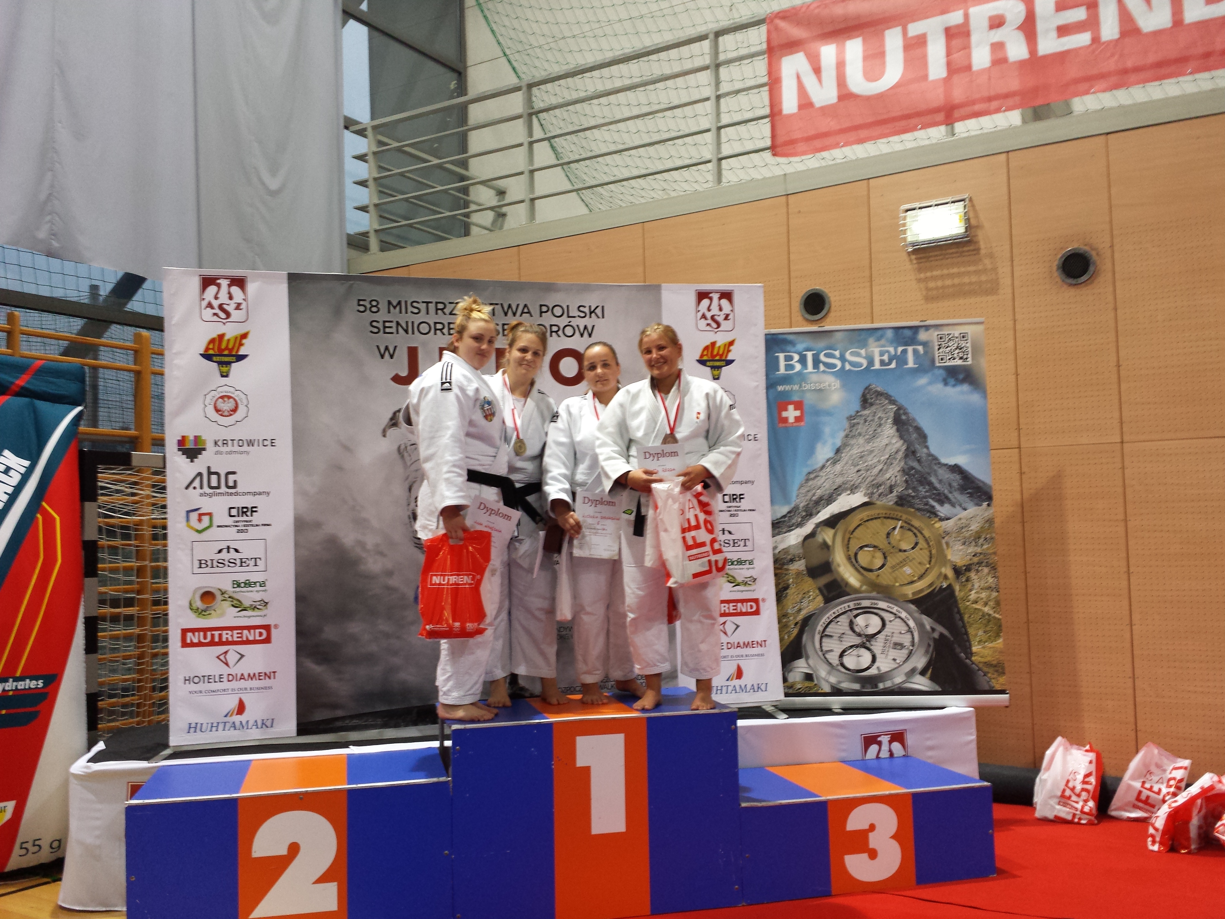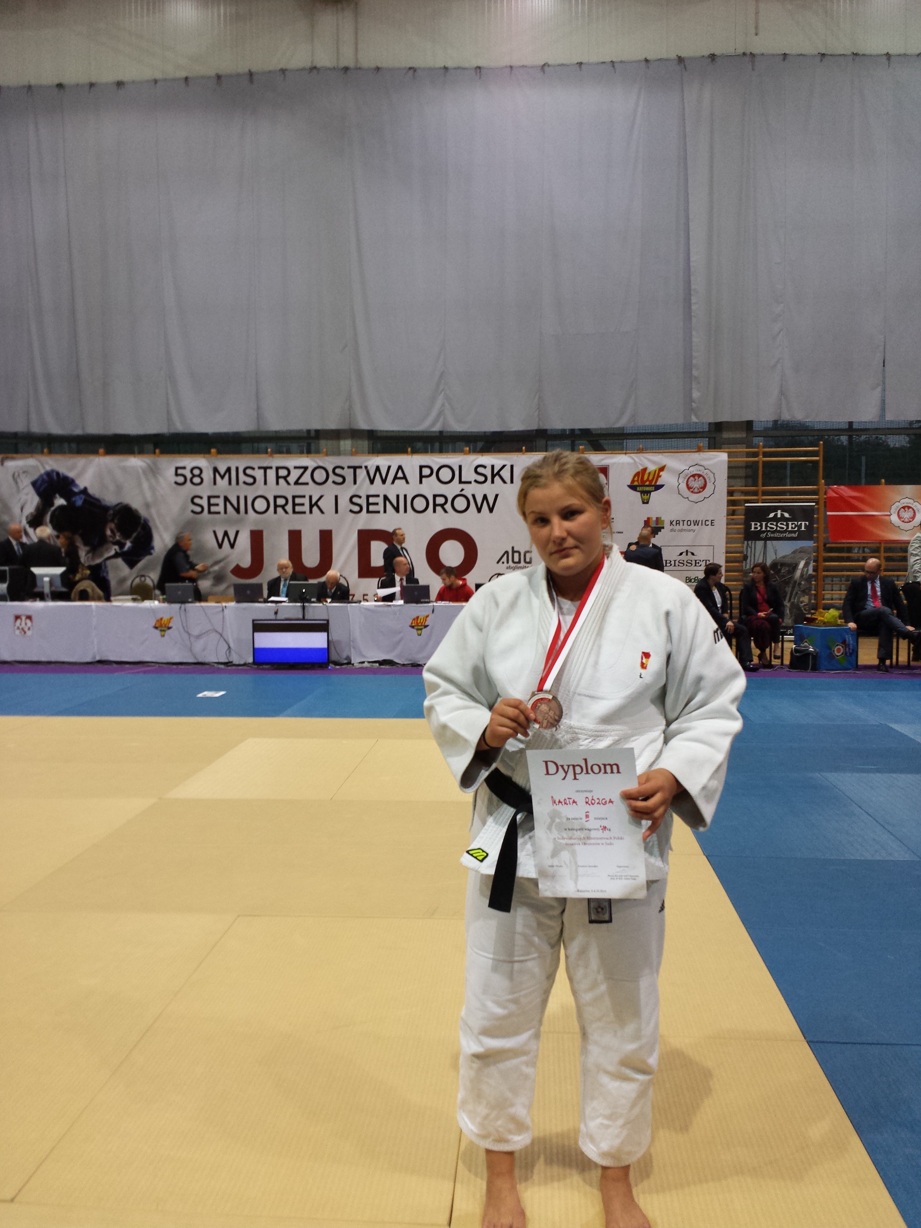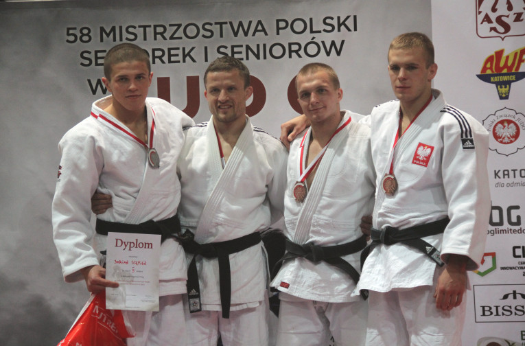 Ostatni weekend przyniósł nam trzy medale! W Katowicach rozegrano 58. Mistrzostwa Polski Seniorek i Seniorów 2014 w których nasze województwo reprezentowały trzy kluby, AZS Łódź, MMKS "Wojownik" Skierniewice oraz KS "Gwardia" Łódź. Stert reprezentantów naszego województwa zaowocował dorobkiem trzech medali i kilkoma miejscami punktowanymi. W kat. 66kg byliśmy świadkami wielkich emocji, ponieważ ALEK BETA WYWALCZYŁ ZŁOTO!!! Udało się powtórzyć sukces z 2012 roku z Lubonia, gdzie zawodnik  KS "Gwardia" Łódź również stanął na najwyższym stopniu podium. Beta stoczył pięć pojedynków z tego cztery wygrane przez ippon! W walce finałowej zmierzył się z utytułowanym Tomaszem Kowalskim, którego pokonał w parterze wykonując duszenie. W tej samej kat. Damian Popiel uplasował się na 7. pozycji. Damian pewnie wygrał dwie pierwsze walki, o mistrza ćwiartki niestety uległ zawodnikowi z Gwardii Warszawa, a następnie toczył boje w repasażach, gdzie na swej drodze napotkał piątego zawodnika Igrzysk Olimpijskich w Londynie - Pawła Zagrodnika. Damian przegrywając przez yuko nie doszedł do walki o brąz. Medale brązowe wywalczyli Marta Rózga waga +78kg z KS "Gwardia" Łódź oraz Wiktor Mrówczyński w kat. 73kg wychowanek trenera Jerzego Gołębiewskiego, reprezentujący MMKS "Wojownik" Skierniewice. Oprócz Damiana Popiela na miejscach punktowanych uplasowali się, w wadze do 90kg Paweł Mróz, miejsce piąte, reprezentujący MMKS "Wojownik Skierniewice oraz na miejscu siódmym podopieczna trenera Leszka Piąstki Agata Cal w wadze do 63kg reprezentująca AZS Łódź. Gratulacje dla zawodniczek, zawodników oraz ich trenerów!!!